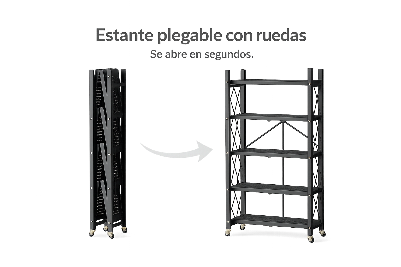 Organizá tu cocina, living o espacio de trabajo con este estante práctico y versátil. Su diseño plegable te permite guardarlo fácilmente cuando no lo uses, y gracias a sus ruedas giratorias con freno podés moverlo de un lugar a otro sin esfuerzo.
